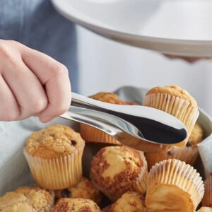 Upgrade your buffet with 6 inch 18/8 stainless steel serving tongs, smooth edge, compact, durable, perfect for salads, pastries, and sides.