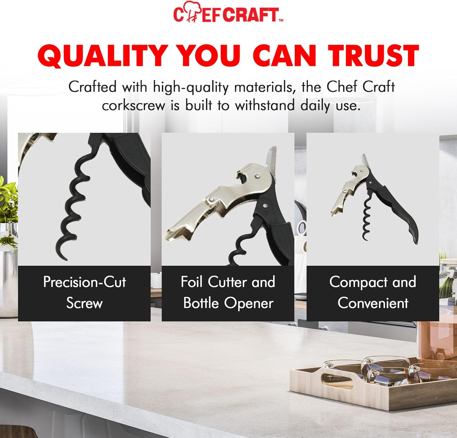 Serve like a pro with this all in one waiter corkscrew and bottle opener, double hinged, compact, perfect for wine nights.