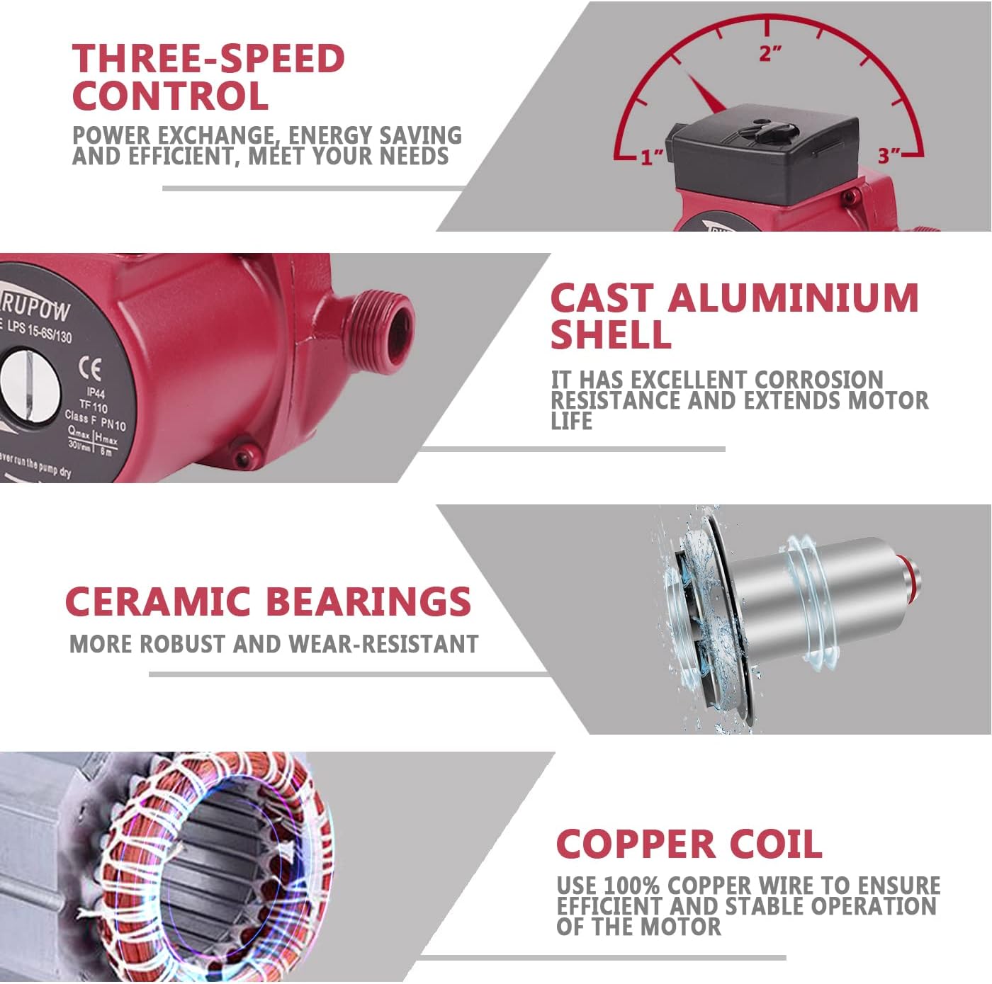 Enjoy faster hot water with the Trupow 3-speed 110V circulation pump, 3/4 inch NPT ports, quiet, efficient, and easy installation.