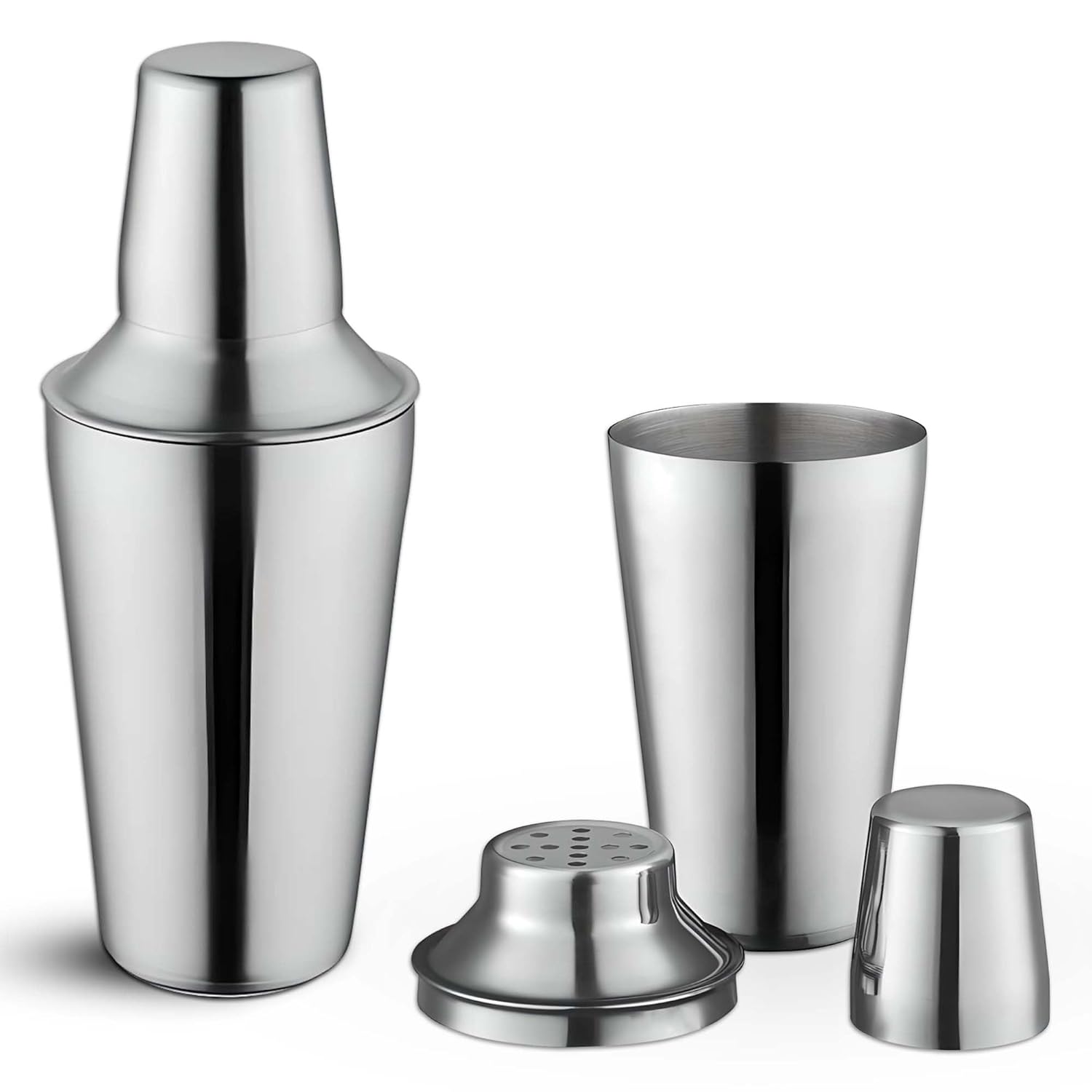 Shake like a pro with this 16 oz stainless steel cocktail shaker, 3 piece cobbler design, built in strainer, effortless cocktails.