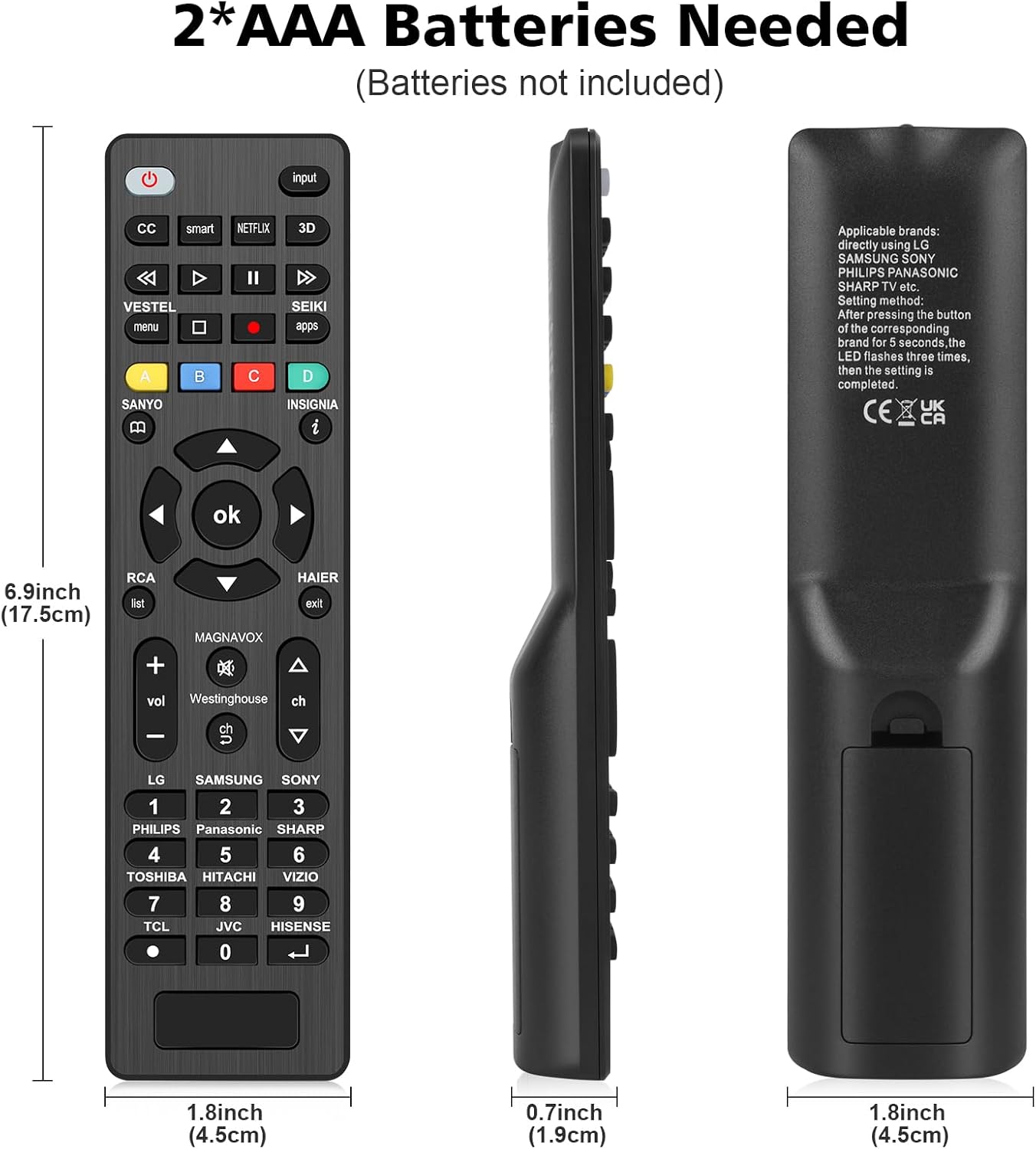 Universal Remote Control for Samsung, LG, Vizio, TCL, Sony, Insignia, Sharp, Philips, Panasonic, JVC