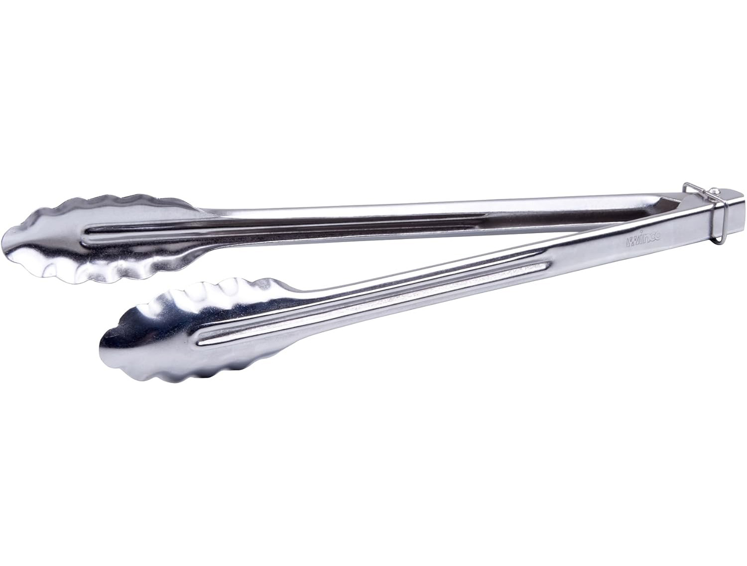 Handle high heat and heavy foods with these 12 inch extra heavy duty stainless steel utility tongs. The strong, one piece construction provides a firm grip on meats, vegetables, and pans, while the scalloped tips hold food securely without tearing. Ideal for grilling, line cooking, and buffet service, the stainless steel design resists rust and cleans easily in busy commercial or home kitchens.